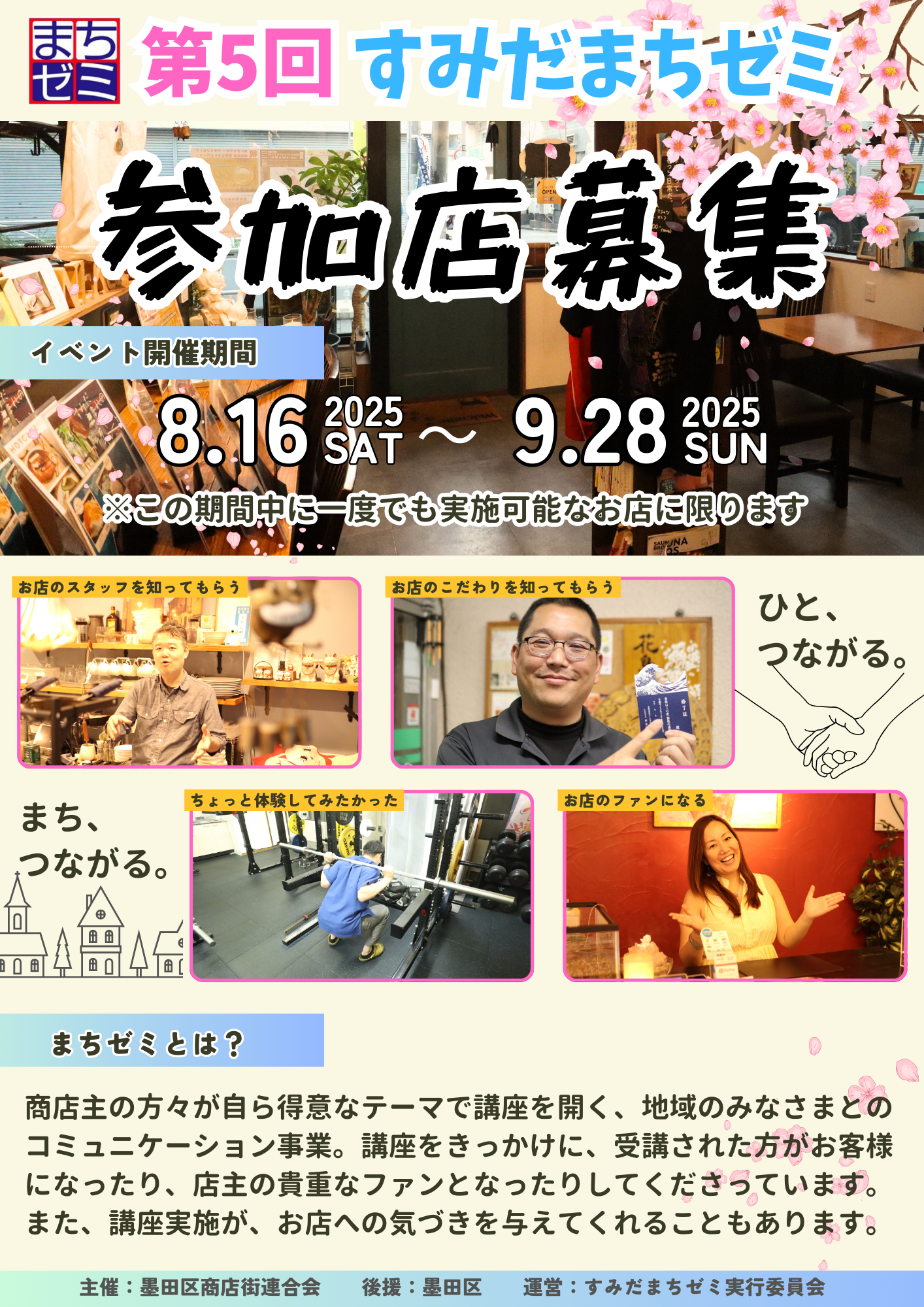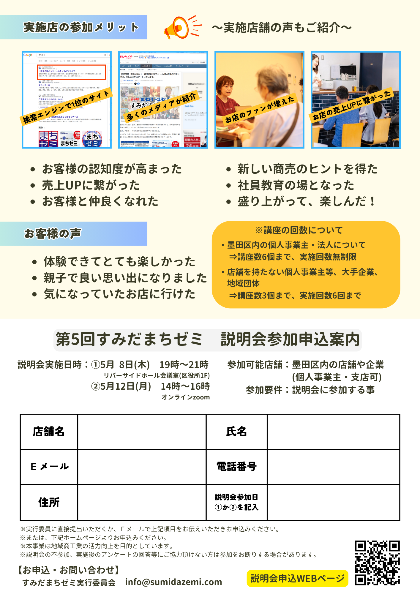 『第5回すみだまちゼミ』に出店希望店舗は①②のどちらかの説明会に必ず参加ください。